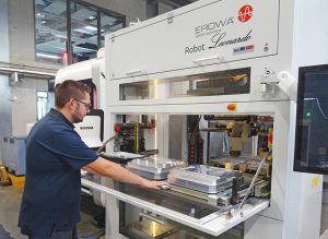 Travaillant dans une logique rapidement accessible par l’opérateur, le matériel Erowa s’intègre facilement. L’accompagnement du personnel est assuré sur le terrain au moment de la mise en route par le monteur et intégrateur système. Tous les paramétrages de communication avec la machine et le système informatique de l’entreprise Aerem ont été effectués en amont au siège d’Erowa France, à Annecy. Le démarrage de la cellule a immédiatement offert une productivité opérationnelle de bon niveau. Pour autant, l’équipe Erowa France est restée en contact pour suivre la montée en puissance et délivrer quelques conseils aux opérateurs qui se prennent d’intérêt pour optimiser les possibilités d’organisation. Ils s’approprient un mode d’organisation qui leur permet d’exprimer leur savoir-faire et franchir de nouveaux paliers de performance économique.