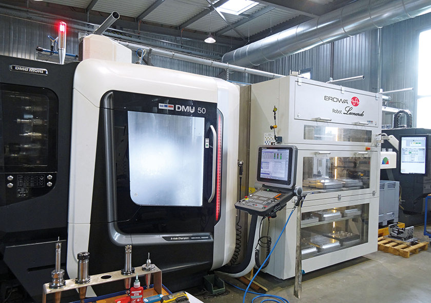 Rassurée par le partenariat collaboratif qui se développe sereinement entre DMG Mori et Erowa, la société Aerem a opté pour une configuration de cellule composée d’un centre DMU 50 de troisième génération, d’un environnement Erowa avec le Robot Léonardo, le système de palettisation MTS point Zéro et le système de pilotage JMS 4.0. L’installation de la cellule dans la nouvelle usine a été réalisée sur un week-end, preuve d’une parfaite entente entre les deux fournisseurs.