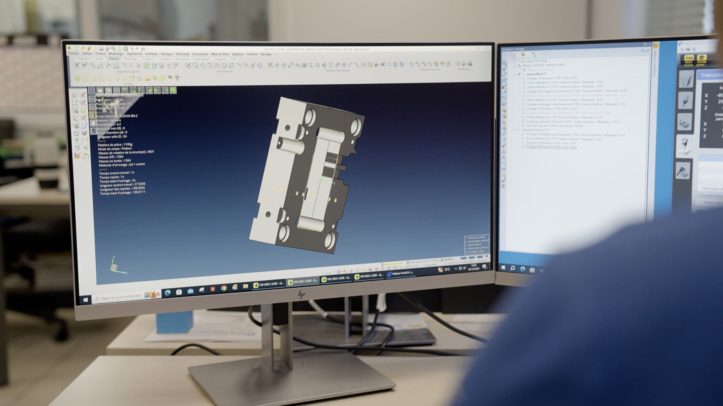 Le choix d’une nouvelle solution de CAO et de FAO a également fait l’objet de discussions en interne et en externe. « Notre ancien logiciel devenait obsolète et le support client était limité. Nous avons fait le choix de migrer vers la solution VISI CAO du groupe Hexagon, car c’est un logiciel métier. Le support client est très performant », précise Pierre-Alain, cheville ouvrière pour la programmation et l’utilisation du centre d’usinage. VISI CAO leur permet de concevoir les moules d’injection à l’aide, entre autres, des modules tels que VISI Mould, qui autorise l création de plans de joints, l’aide à la régulation, l’insertion d’éléments standard en lien avec les catalogues fournisseurs. Il y a là de véritables gains de temps.