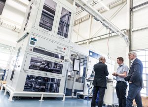 Depuis plusieurs années déjà, Liebherr-Aerospace a aussi fait le choix d’une production automatisée Erowa. L’intégration du système de pilotage Erowa et d’un robot ERD 500 a su répondre au besoin de monter en charge des fabrications. Afin de gérer les accroissements continus d’activité ainsi que les fluctuations de ces deux dernières années, ce mode de management de la production a permis la mise en place de cette logique d’agilité, de sécurité, d’évolutivité et de performance globale en production. Pionnière dans la mise en œuvre de solutions d’automatisation pérennes, la société a su prendre les devants et ainsi poser des bases solides lui permettant une flexibilité essentielle dans la construction des projets d’avenir qui lui sont confiés.