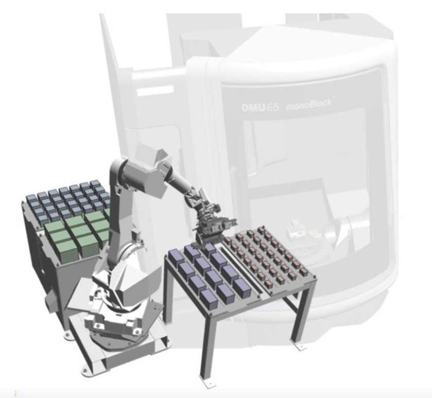 Le robot appelle les différents programmes d’usinage pour la machine-outil et peut aussi programmer des contrôles fréquentiels, si nécessaire. Après usinage, il peut retourner les pièces usinées pour les préparer à l’usinage de l’opération suivante. L’enchaînement de séries différentes fait travailler la broche de la machine-outil plus longuement, jusqu’à parfois une nuit de production effective.