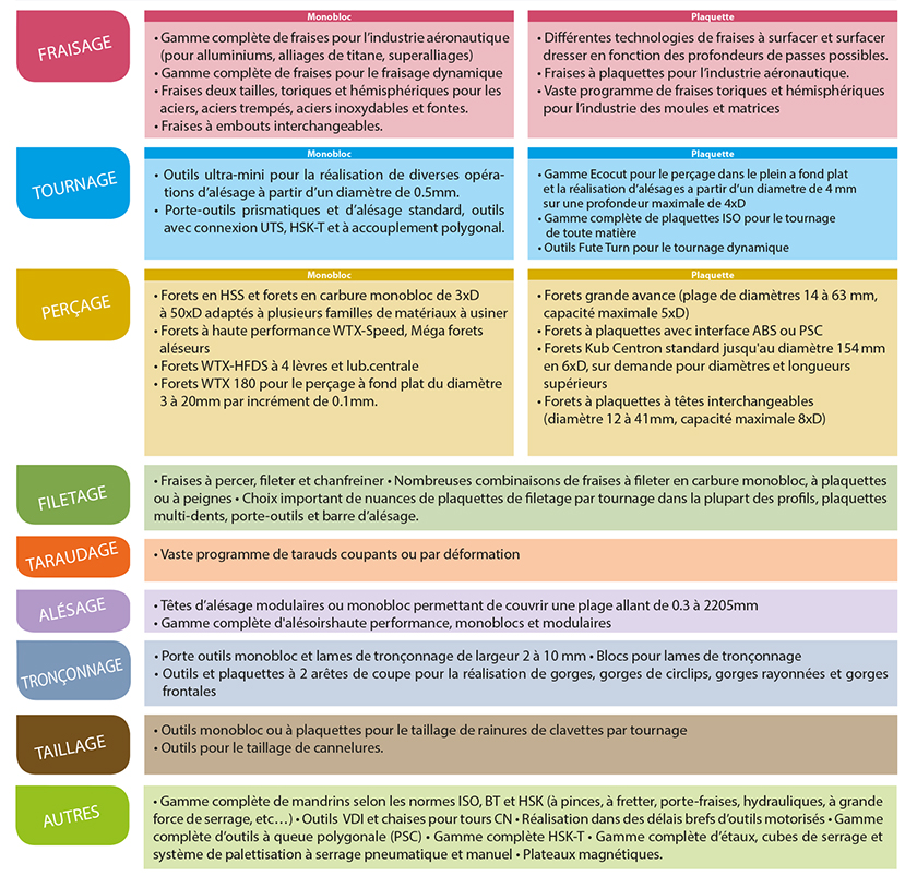 – WNT : solution en carbure monobloc, forets, fraises, tarauds et serrage d’outils ou de pièces.