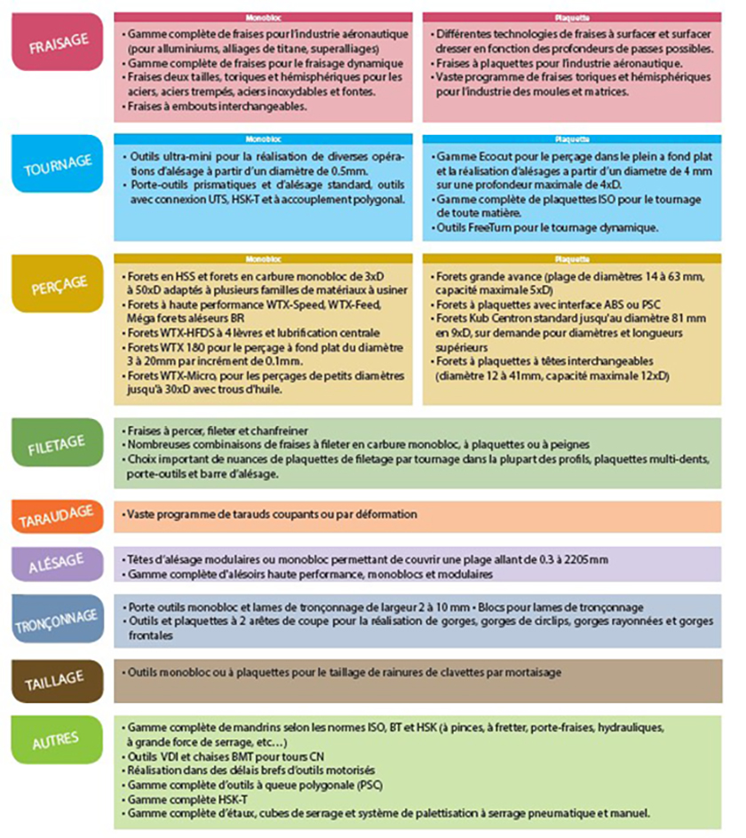– WNT : solution en carbure monobloc, forets, fraises, tarauds et serrage d’outils ou de pièces.