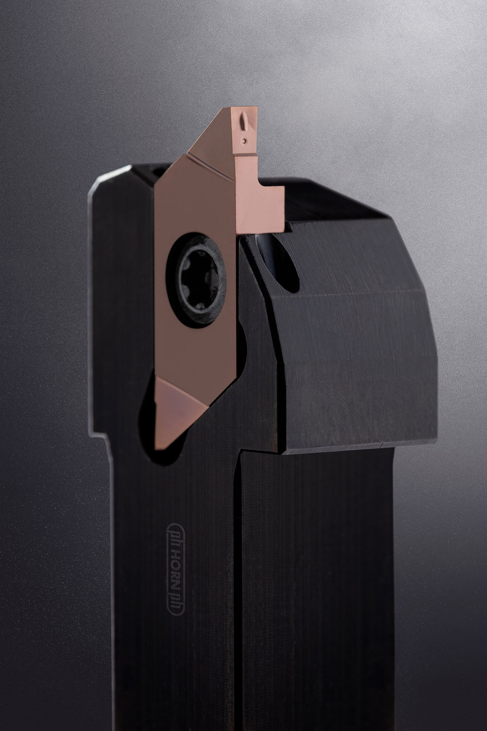 Autre nouveauté, la géométrie I frittée est spécialement dédiée au système d’outils Mini des types 108, 111 et 114 ; elle est particulièrement adaptée à l’usinage de matériaux présentant de mauvaises propriétés de formation de copeaux comme le copiage, le chariotage, le tournage arrière ainsi que le dressage de face. Mais c’est surtout pour les petites passes dans l’acier et les aciers inoxydables que le système d’outils avec géométrie montre ses points forts en matière de contrôle des copeaux. Il en résulte une plus grande stabilité du processus et une durée de vie plus longue lors de l’utilisation. Lors du développement de la géométrie I, Horn a également tenu compte de l’usinage des matériaux sans plomb.