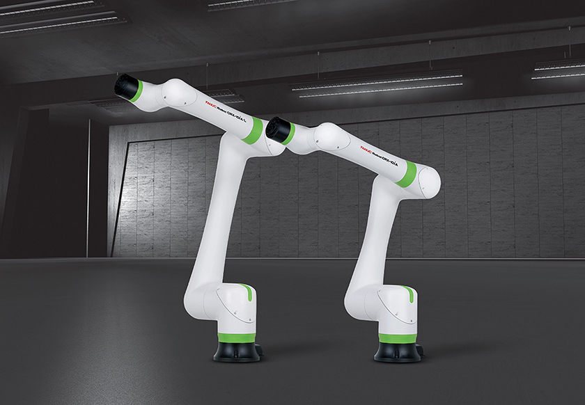 Le CRX-10iA s’adresse à toutes les PME souhaitant franchir le pas et installer un premier robot dans leurs ateliers. Celui-ci est proposé en deux versions : avec un bras court d’une portée de 1,20 m., ou un bras long d’une portée de 1,40 m. Toutes deux offrent une charge utile de 10 kg. La conception entièrement nouvelle du CRX-10iA se remarque au premier coup d’œil : le design est ergonomique et le bras particulièrement fin. Mais derrière l’enveloppe se cache une autre évolution majeure : l’interface utilisateur qui permet d’installer, d’utiliser et de programmer le robot très facilement. Pour autant, le CRX-10iA ne cède rien, ni à la qualité qui a fait la réputation de Fanuc, ni aux options qui permettent une automatisation intelligente. Il peut par exemple être équipé d’un système de vision intégré (iR Vision Fanuc, ou autre) pour charger et décharger de manière totalement autonome des bacs ou des rayonnages.