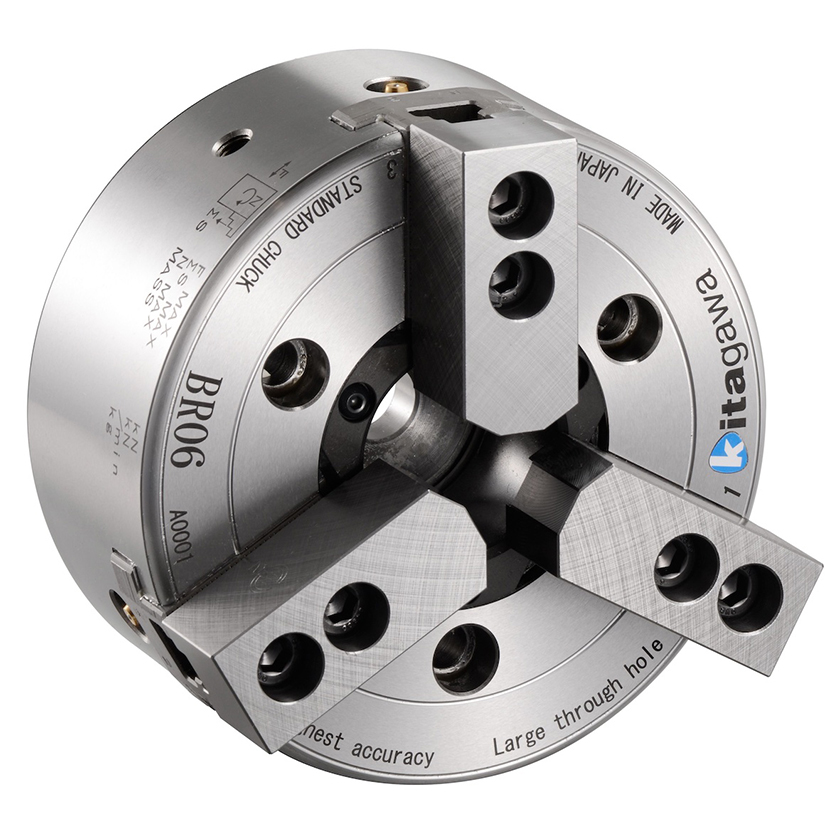 Parmi les nouveautés Kitagawa présentées sur le salon du décolletage : une nouvelle série de mandrins BR permettant une augmentation de la vitesse, de la force de préhension et du diamètre intérieur de passage, par rapport aux mandrins classiques. Interchangeable avec les mandrins des séries B200 et BB200, la série BR offre une capacité de trou traversant aussi importante que celle de la série BB200, les mêmes dimensions de montage et les mêmes mâchoires souples.