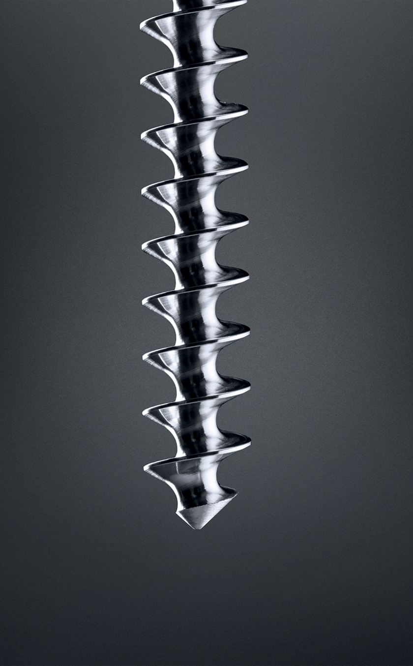 Le tourbillonnage témoigne, entre autres, de ce savoir-faire de Horn. Les taux élevés d’enlèvement de copeaux, les longs filetages aux qualités de surface élevées, les profils profonds de filet, les copeaux courts, les filetages à filets multiples et les faibles sollicitations d’outils sont les atouts principaux du processus de tourbillonnage. Néanmoins, malgré ces avantages, l’utilisateur doit aussi relever des défis techniques. Un aspect important est celui des matériaux utilisés pour les vis à os. Les plaquettes pour le tourbillonnage sont soumises à des sollicitations particulièrement élevées lors de l’usinage du titane, des aciers inoxydables et autres superalliages. Afin de prévenir l’usure des arêtes de coupe et d’assurer un volume élevé d’enlèvement de copeaux ainsi qu’un temps d’usinage très court, les fabricants d’outils sont tenus d’optimiser et de perfectionner, sans relâche, les outils et les procédés utilisés.