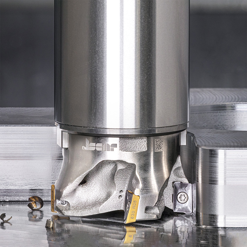 La conception de la fraise se base également sur le principe d’un pas angulaire différentiel pour améliorer la résistance de l’outil. Cette nouvelle conception combinant un matériau de corps atypique avec les avantages de la FA a permis de créer des fraises en bout à plaquettes légères et robustes destinées aux applications d’usinage avec de grands porte-à- faux. Le nouvel outil garantit une coupe stable avec des porte-à-faux importants, pour une productivité augmentée et une durée de vie d’outil améliorée. Pour des résultats accrus et une excellente finition de surface, il est recommandé de monter la fraise sur des porte-outils dotés d’un mécanisme anti-vibratoire, par exemple les adaptateurs Whisper Line Iscar.