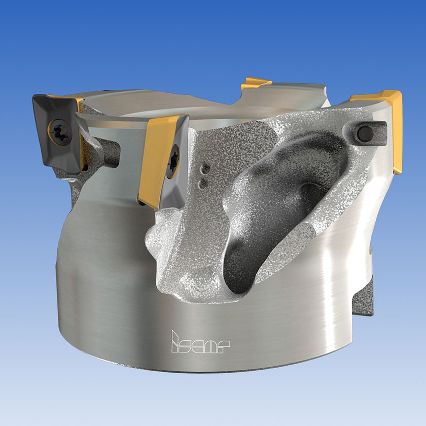 Les technologies de production actuelles permettent de surmonter ces obstacles. La fabrication additive (FA) est une méthode efficace pour réaliser une configuration complexe d’un corps de fraise tout en minimisant les opérations d’usinage. L’impression 3D facilite la production d’outils en titane tout en garantissant un aspect technico-économique. Il est de plus en plus courant de concevoir des fraises à plaquettes légères avec des corps en titane en utilisant la fabrication additive.