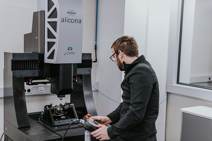 Le nouveau directeur de Bruker Alicona France ne manque pas d’ajouter que le spécialiste de la métrologie sans contact offre bien plus qu’un outil de contrôle. « Bruker Alicona apporte une réponse concrète aux défis actuels de l’industrie. Il s’agit d’une métrologie exigeante, innovante et parfaitement adaptée aux réalités du terrain ». Or, ces réalités du terrain sont multiples et combinent à la fois du contrôle qualité en environnement industriel avec des besoins en précision toujours plus critiques et des géométries de pièces de plus en plus complexes et difficiles d’accès, et cela en répondant aux exigences de délais serrés. Pour ce faire, l’entreprise a présenté sur son stand son best-seller, le Focus X. « Il s’agit de notre dernière innovation qui se définit comme un système de mesure optique polyvalent à la fois compact et robuste, pleinement adapté aussi bien à l’atelier qu’au laboratoire », résume Cyril Aujard.