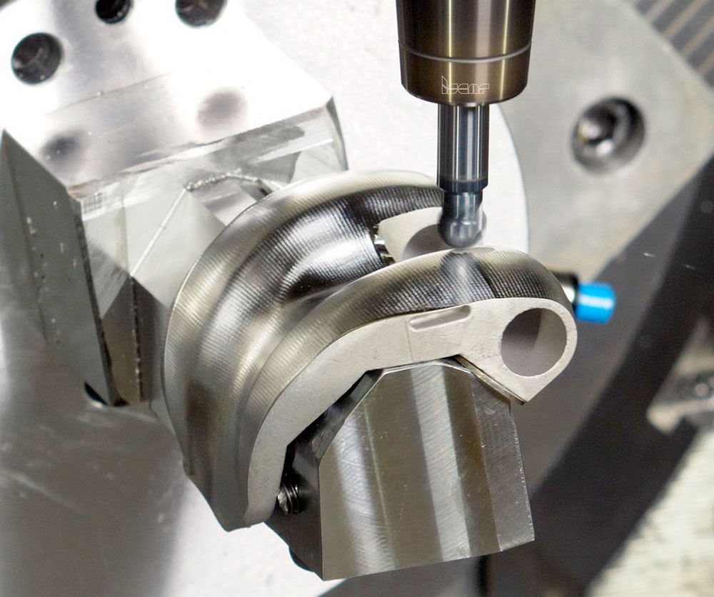 L’usinage du composant fémoral représente l’une des tâches les plus complexes dans la fabrication orthopédique. Sa forme externe se compose presque entièrement de surfaces 3D lisses et de formes libres. Pour obtenir la géométrie requise, il faut recourir à des centres d’usinage multiaxes, généralement à 5 axes, et à une programmation CAM avancée. Les matériaux les plus utilisés pour cette pièce sont les alliages de cobalt-chrome, sélectionnés pour leur dureté et leur résistance à l’usure. Ces alliages sont réputés difficiles à usiner en raison de leur résistance, de leur abrasivité et de leur forte tendance à l’écrouissage. Les alliages de titane utilisés dans d’autres conceptions posent des problèmes de concentration de chaleur et d’adhérence chimique aux arêtes de coupe. Par conséquent, les outils destinés à l’usinage du composant fémoral doivent offrir une grande intégrité des arêtes, des géométries qui réduisent les efforts de coupe et des revêtements capables de résister à des températures élevées.
