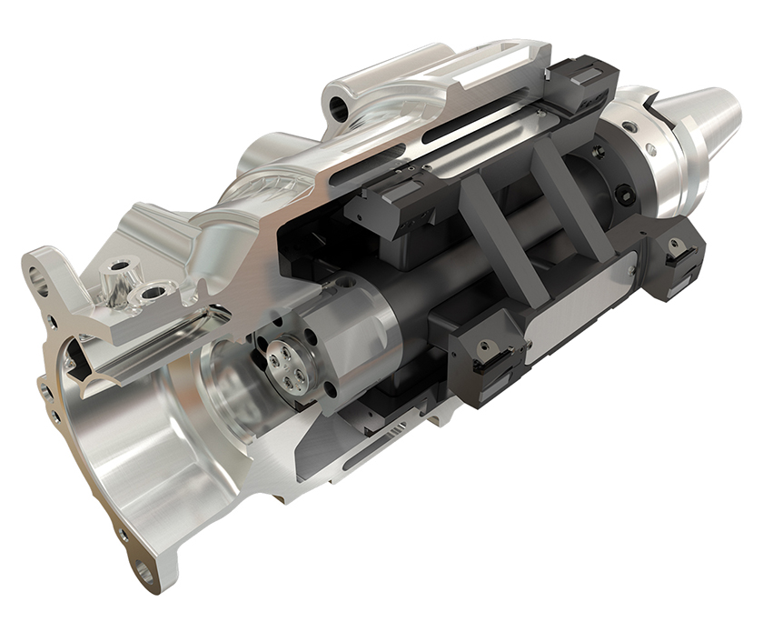 L’opération la plus délicate dans l’usinage d’un carter de stator en aluminium reste l’alésage du diamètre principal. Compte tenu de l’utilisation de plus en plus courante des machines de faible puissance, le grand diamètre d’outil et l’important porte-à-faux imposent des développements ingénieux afin de minimiser le poids et la charge de la broche tout en conservant une rigidité maximum. Les matériaux exotiques tels que le titane ou la fibre de carbone sont utilisés dans la fabrication des corps d’outils comme dans la conception des châssis soudés. L’utilisation de la méthode des éléments finis contribue à résoudre de nombreux obstacles liés aux applications difficiles grâce à la prise en compte de nombreux paramètres tels que les efforts de coupe, la zone de déplacement pendant l’usinage, la fréquence naturelle et la déformation maximum.