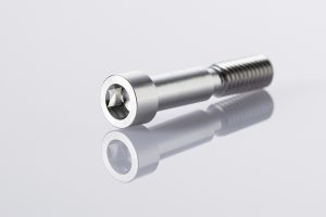 La vis est un implant et elle fait partie d’un élément pour une prothèse de genou. Hymec fabrique les vis dans différentes ouvertures de clé, 2,5 mm, 3,5 mm et 5 mm. Le « six pans » est fabriqué comme ajustage avec une faible tolérance pour que la vis soit bien placée sur la clé hexagonale lors de l’insertion. En outre, la qualité de la surface doit être irréprochable, étant donné que la moindre crevasse ou bavure peut constituer un foyer de germes. L’entreprise fabrique près de 5 000 vis de ce type par an.