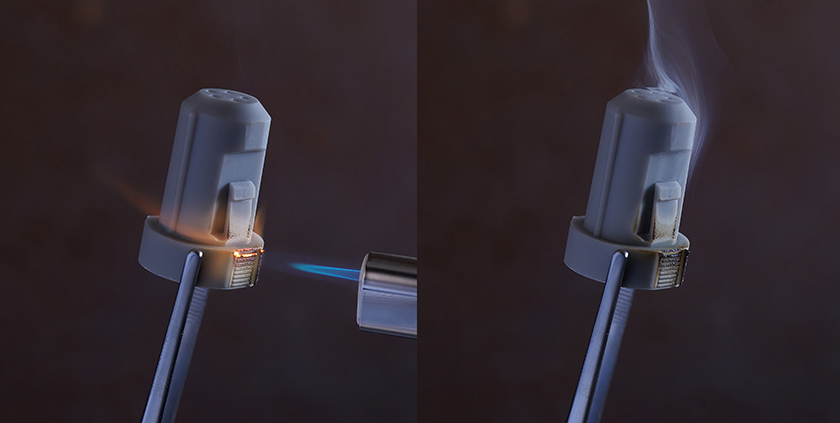 Notamment développée pour le transport, Flame Retardant Resin est la première résine auto-extinguible certifiée UL 94 V-0 de Formlabs