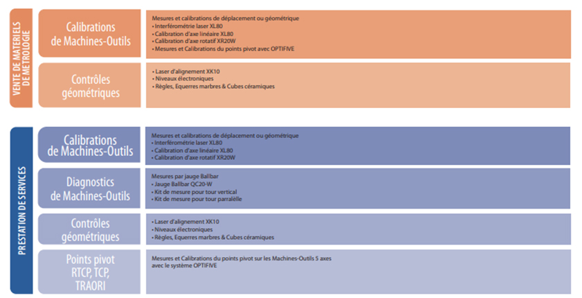 – Mesures Calibrations d’axes linéaires et rotatifs,
