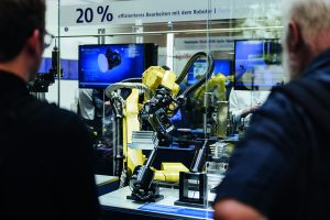 On trouve en outre des approches d’automatisation dans d’autres domaines. En effet, les robots ne se contentent pas de charger et de décharger les machines et d’aider au montage, ils prennent également en charge des tâches d’usinage impopulaires mais cruciales, telles que l’ébavurage, le meulage ou le polissage. L’expert en automatisation a fait des démonstrations en direct de ce fonctionnement plusieurs fois par jour. Avec les outils R-Emendo, de nombreuses tâches peuvent être automatiquement et directement liées au processus d’usinage dans la machine-outil.