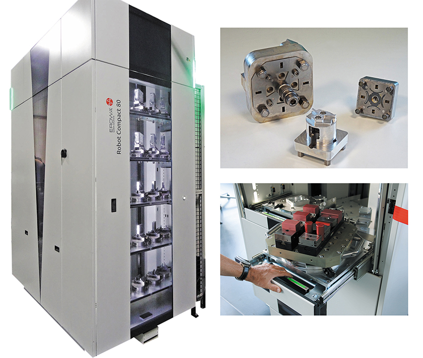 La prise en main en atelier par les techniciens opérateurs s’effectue en moins d’une journée avec l’accompagnement des équipes techniques d’Erowa. ERC 80 dispose d’une interface de base pour le dialogue machine. La démarche Erowa 4.0 connaît un succès sans précédent auprès des entreprises françaises, toutes tailles confondues. Le soft ­ProductionLine JMS 4.0 offre une approche pragmatique de la gestion de production. La technologie 4.0 intègre avec leur historique tous les équipements, outils et montages disponibles. Elle permet même la réalisation de pièces en dehors du cadre de la robotisation. Des tableaux de bords très prisés par les gestionnaires de production proposent une nouvelle lecture de stratégies d’exploitation du potentiel (productivité-réactivité) de la cellule robotisée.