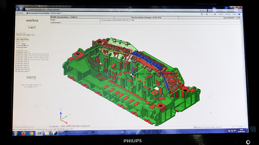 Enfin, depuis cet investissement, il n’y plus de plans papier. Les informations nécessaires aux opérateurs – point zéro, parcours, types d’outils, etc. – sont directement transférées sur un ordinateur situé à côté d’une machine-outil. Les échanges de données sont aujourd’hui fluides dans la chaîne numérique de Filmatic Industrie, de la réception de fichiers 3D des clients à la mise en route des machines-outils.