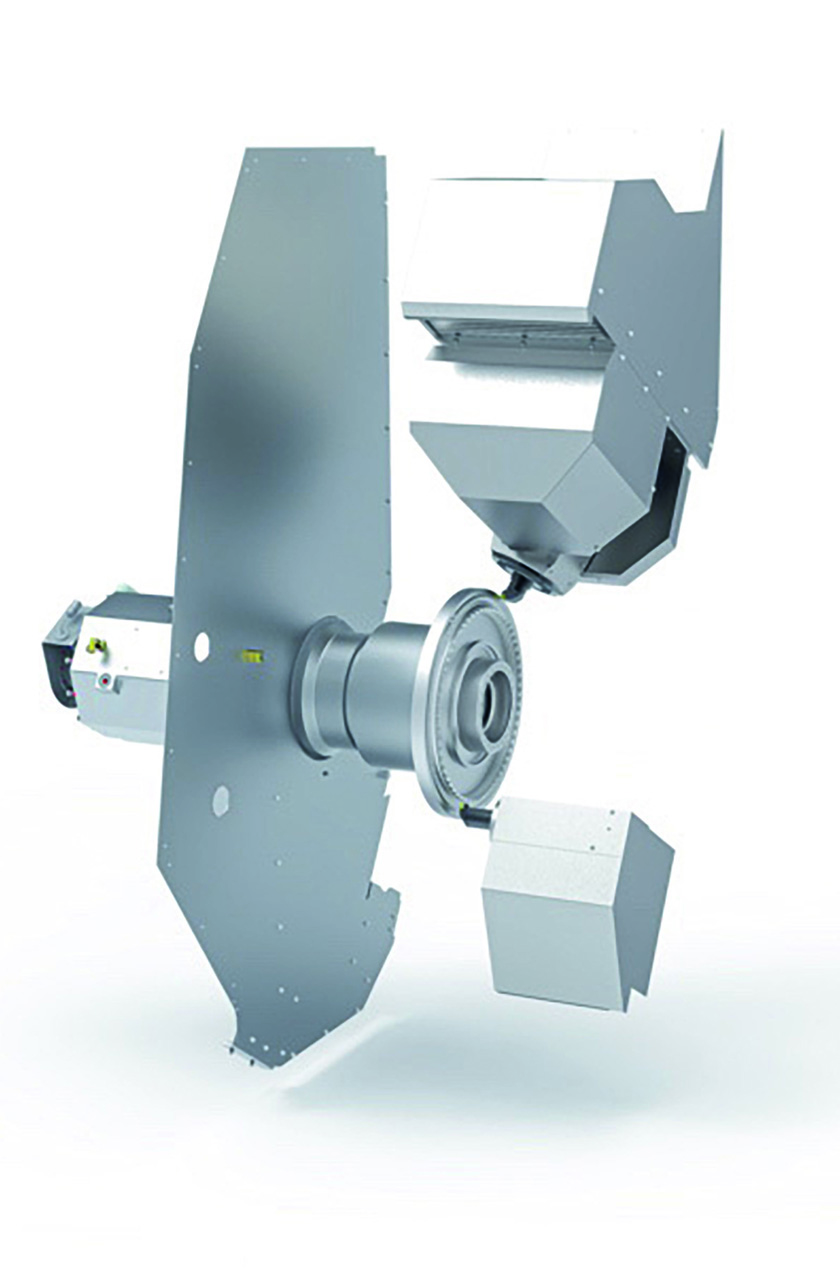 Tout d’abord, focus sur l’usinage complet de disques en 4 axes (concept top/bottom). En permettant l’usinage de la pièce par le haut et le bas et en utilisant deux porte-outils uniques, une productivité maximale est assurée. Le système supérieur peut être conçu comme une unité de tournage – alésage (TB), tournage avec les axes X, Z, Y et B, ou comme une unité de fraisage – tournage (MT), usinage complet sur 5 axes. Le système inférieur est alors configuré comme une unité T. Les deux outils peuvent être automatiquement échangés – et surtout, très rapidement – à tout moment.