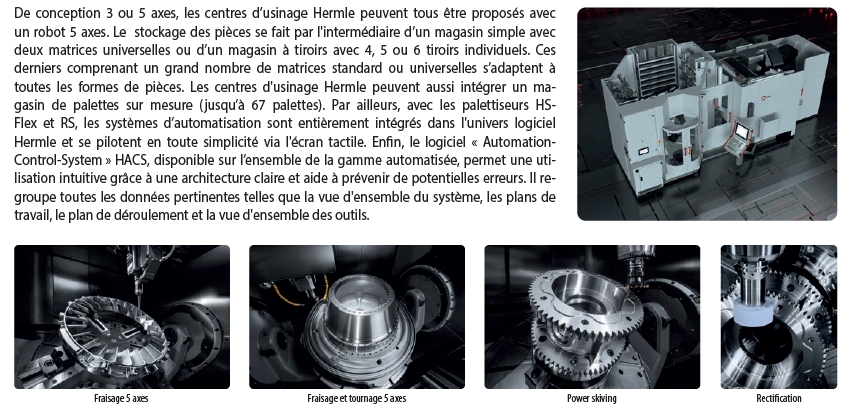 Hermle, c’est une gamme de 9 machines de fabrication 100% allemande avec 2 sites de production situés entre Strasbourg et Stuttgart, en plein parc régionale de la Forêt Noire. De conception 3 ou 5 axes, ces centres d’usinage peuvent tous être proposés avec une automatisation Hermle.