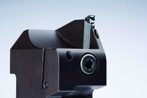 La géométrie spéciale aluminium offre une excellente qualité de surface des pièces lors de la finition des gorges. Elle agit contre la formation d’arêtes rapportées et génère des copeaux en spirale de petite taille, ce qui garantit un bon contrôle des copeaux et une sécurité de process élevée. Le rétrécissement adapté des copeaux lors de la plongée permet d’éviter les détériorations au niveau des flancs, et ainsi d’obtenir une qualité de surface élevée. Pour des conditions d’usinage optimales, Horn recommande des porte-plaquettes avec arrosage intérieur, notamment via le doigt de serrage. Le refroidissement intégré agit ainsi directement dans la zone de coupe, participant à l’amélioration de la sécurité du processus.