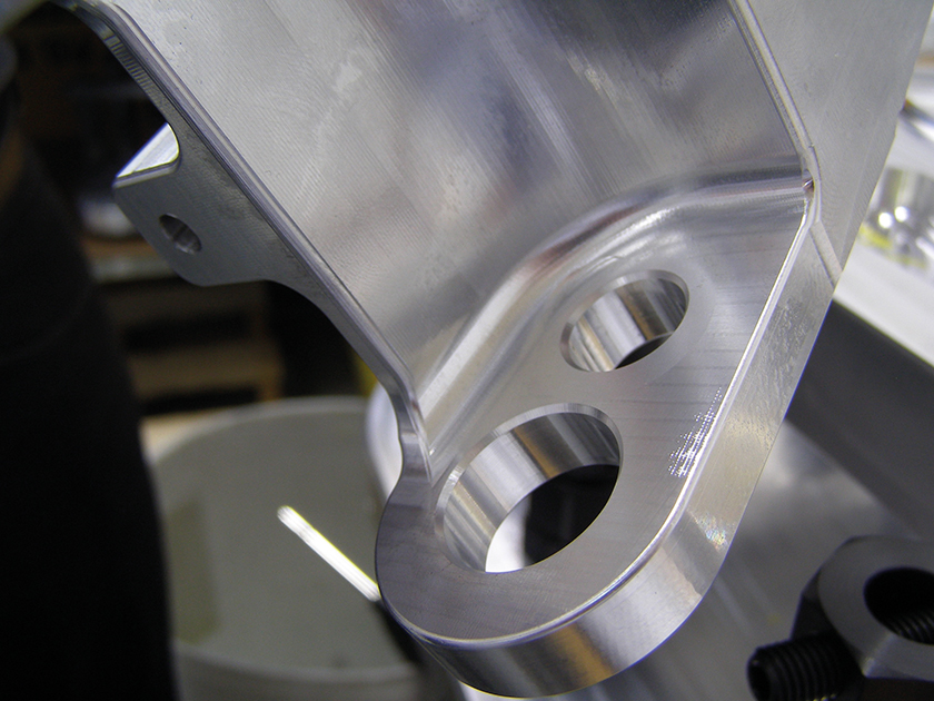 L’usinage tangentiel des faces planes 5 axes et l’usinage tangentiel 5 axes, qui sont utilisés pour la pièce de train d’atterrissage de Linda Tool et qui sont adaptés à la fois aux surfaces planes accessibles et difficiles d’accès, permettent également un haut degré de précision qui dépasse les possibilités offertes par les fraises hémisphériques. Les valeurs de rugosité mesurées sont souvent cinq à dix fois moins élevées que celles mesurées avec des fraises hémisphériques.
