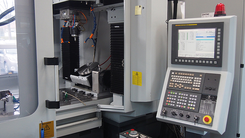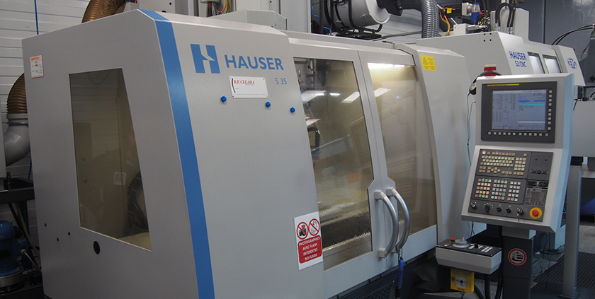 >> Hauser H-55 équipée du plateau diviseur à inclinaison rotative, offrant à la machine pas moins de 8 axes