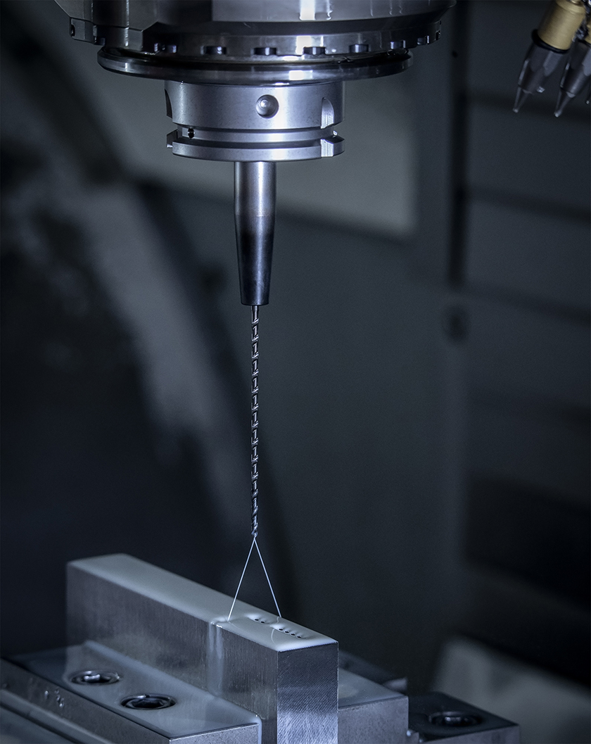 Avec les nouveaux forets WTX-Micro, dotés d’un système d’arrosage à passage hélicoïdal, l’équipe Outils coupants du groupe Ceratizit a développé une solution à partir d’un diamètre de 0,8 mm permettant de percer des trous profonds avec une qualité de surface élevée.