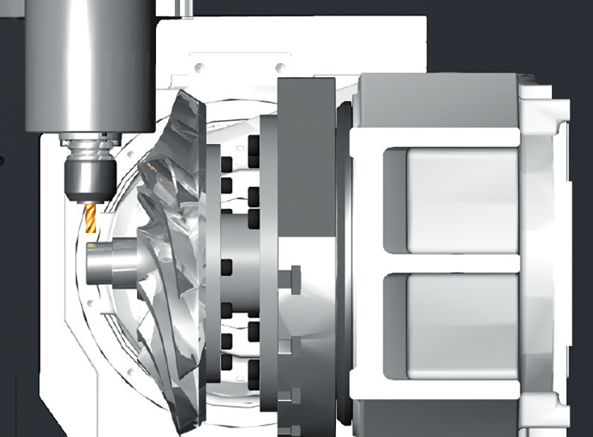 Le Variaxis C-600 se caractérise par son agilité et sa performance, sans compromis sur la rigidité. Cette machine compacte, capable d’usiner des pièces allant jusqu’à Ø730 mm x H450 mm et un poids de 500 Kg, a été conçue avec une grande enveloppe d’usinage et une structure très rigide, grâce à une table de Ø600 mm avec contre palier et un couple vis globique et roue à galet sur les axes B et C. Les performances exceptionnelles à hautes vitesses sont délivrées par des déplacements rapides sur X, Y et Z à 42m/min, et un temps de copeaux à copeaux de 4,5 secondes, réduisant ainsi les temps improductifs dans les cycles rapides.