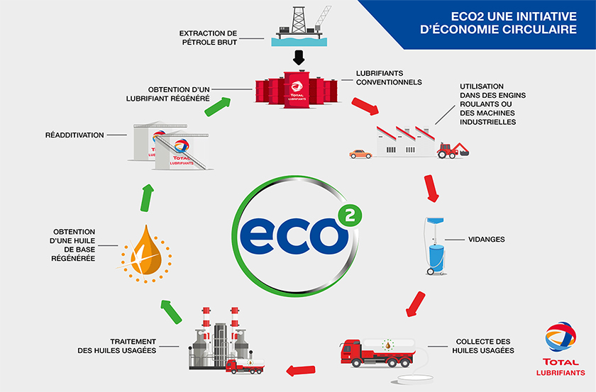 Quatrième acteur majeur du marché international des lubrifiants, Total Lubrifiants annonce le lancement d’ECO2, une nouvelle gamme de fluides hydrauliques industriels qui participe à une démarche d’économie circulaire Celle-ci permet une économie de ressources ainsi qu’une solution à la problématique de fin de vie des lubrifiants.