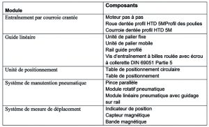 Des modules de préhension pneumatiques sont ensuite utilisés pour saisir et transmettre la pièce. Ceux-ci ont été équipés d’un module de préhension parallèle pouvant supporter jusqu’à 4,7 kg et d’un module rotatif pour illustrer une tâche de préhension dans une course concentrique. La liste complète des modules et composants utilisés dans le développement du « Pick and Place » de norelem se trouve dans la figure 1 ci-dessous.