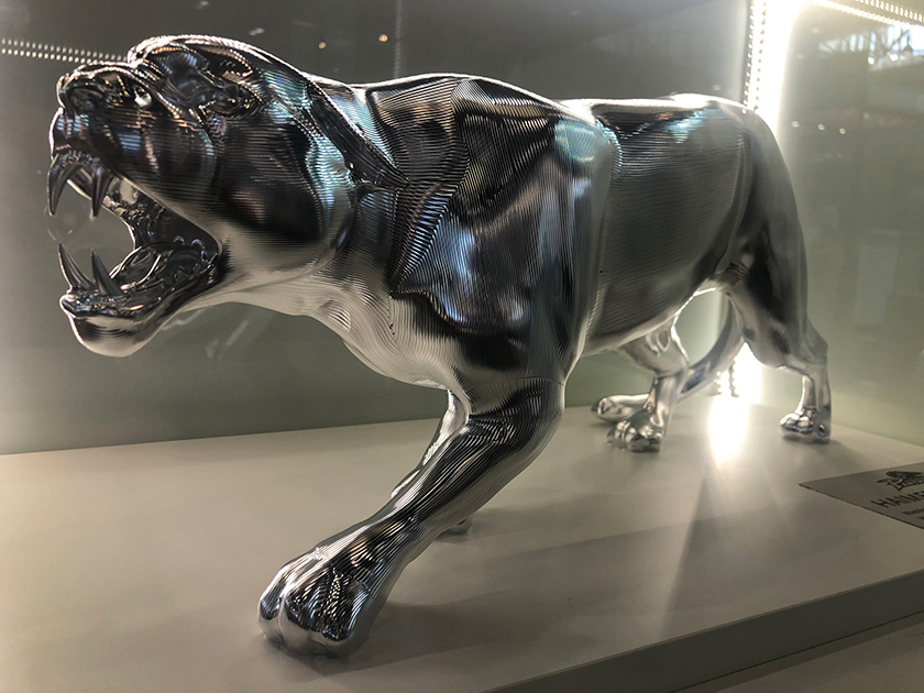 L’usinage complexe d’une panthère miniature fait sensation sur Global Industrie !