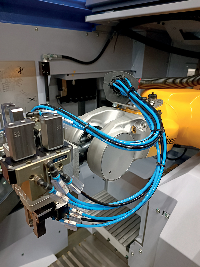 L’intégration d’un robot à l’intérieur de ce type de machine-outil était jusqu’à présent un challenge, en raison de l’exiguïté de la machine. Cela est devenu possible grâce à la conception des robots Stäubli offrant une compacité inégalée et une résistance aux environnements difficiles (projection d’huiles et de copeaux) grâce à leur structure fermée.