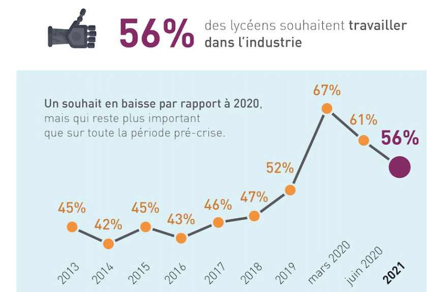 Cette année particulière a mis en lumière la place qu’occupe l’industrie. De nombreux lycéens déclarent mieux connaître les métiers industriels et soulignent son rôle essentiel dans l’économie, dans la lutte contre la pandémie mais également contre le réchauffement climatique.