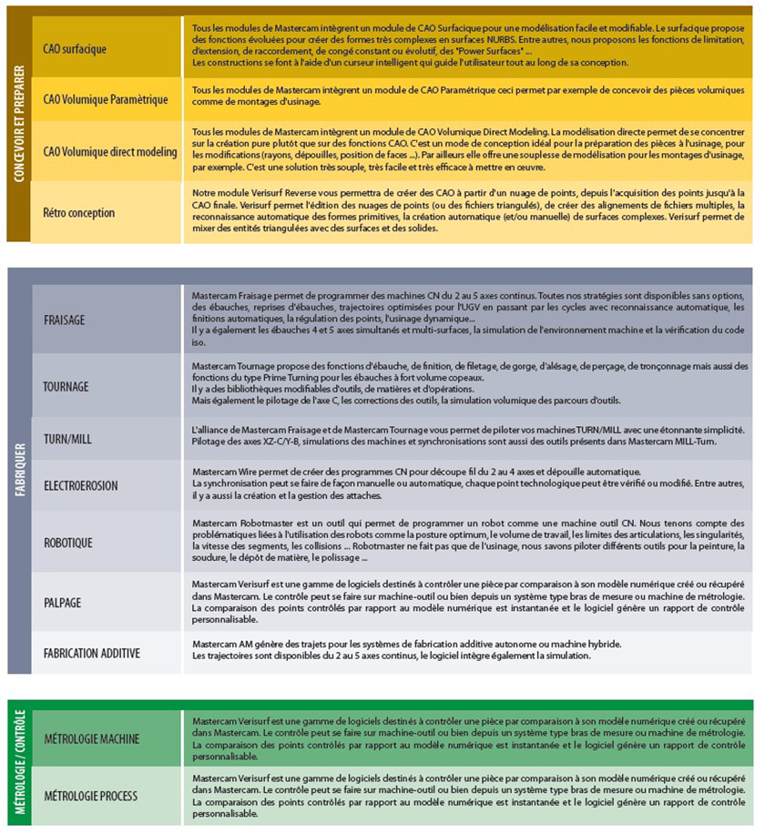 En France, plus de 2 800 sociétés programment leurs MOCN avec MASTERCAM. Chaque distributeur est un véritable centre de compétence en productique, capable de fournir MASTERCAM, la formation, les post-processeurs ainsi que des prestations complémentaires comme des liaisons machines-outils ou du développement spécifique.