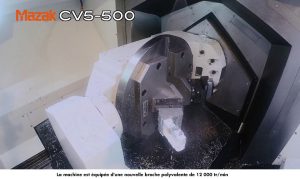 « La nouvelle machine 5 axes est unique dans sa catégorie ». Sa conception d’une grande rigidité et sa table rotative se déplaçant en Y sous un portique permettent d’avoir une machine extrêmement compacte et d’une grande précision. Le CV5-500 présente un nouveau design avec une broche en porte-à-faux permettant de conserver la rigidité de l’usinage, y compris sur toute la course de l’axe Z.