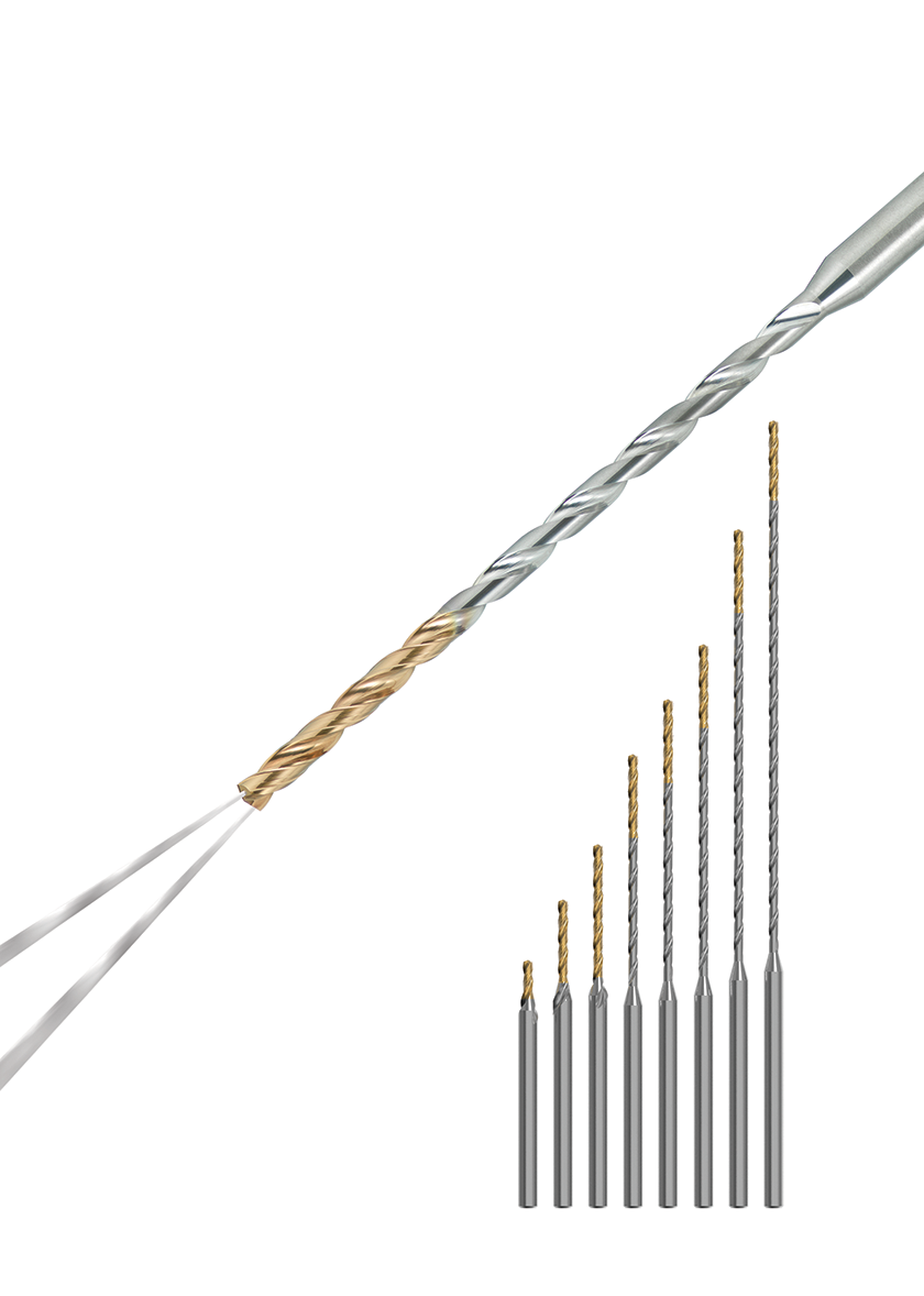 La série DVAS est une solution complète pour le perçage en petits diamètres. Avec une grande gamme de longueurs allant de 2xD à 50xD en diamètres de 1,0 à 2,9 mm par pas de 0,1 mm et comprenant des forets pilotes dédiés, la compatibilité totale des outils permet de sécuriser l’ensemble du process de perçage.