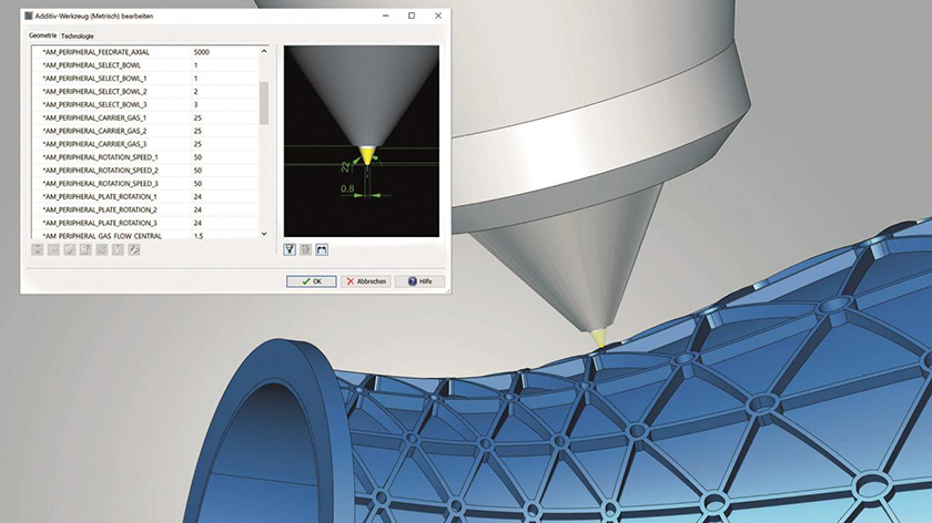 HyperMILL Additive Manufacturing offre une stratégie flexible à l’usinage 5 axes simultanés hautement complexe avec les procédés DED (Direct Energy Deposition) et Waam (Wire Arc Additive Manufacturing). Les codes CN peuvent être aisément programmés et automatiquement simulés pour éviter toute collision. En tant que solution logicielle complète, celle-ci permet un usinage hybride efficace avec usinage additif et soustractif sur une seule machine.