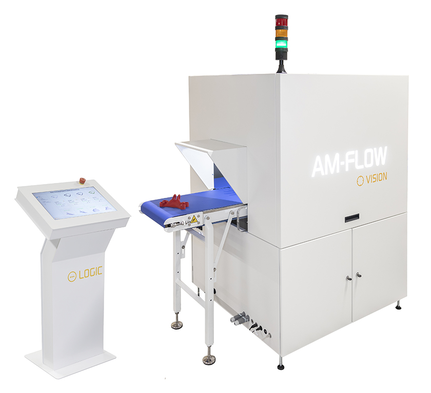 La première étape vers l’automatisation des tâches de post-traitement FA consiste à être en mesure d’identifier chaque pièce qui sort de l’imprimante 3D. Ce besoin commence à faire émerger sur le marché des machines capables d’identifier, en une fraction de seconde, des pièces imprimées en 3D. Le module d’identification AM-Vision exclusif de l’entreprise, par exemple, est équipé de dix caméras qui prennent de multiples images d’une pièce imprimée lors de son passage dans l’unité. Les images obtenues font ensuite l’objet d’un référencement croisé avec les métadonnées du fichier STL correspondant. À partir de ces informations, la machine parvient à identifier les pièces en à peine 0,2 seconde, quels que soient le nombre de pièces imprimées ou leur position sur le transporteur à courroie. En outre, grâce à la puissance de l’apprentissage automatique, le processus d’identification peut être affiné avec le temps, pour encore plus de précision et de fiabilité.