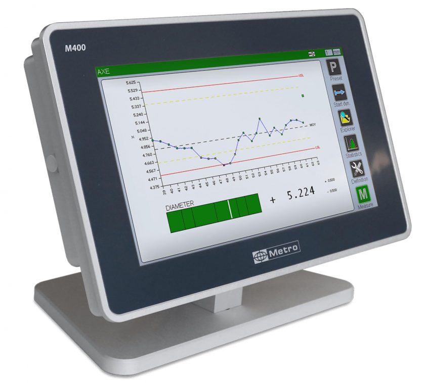 Concernant le M400 de Métro – entreprise française située en Haute-Savoie depuis près de quarante ans –, il s’agit d’un afficheur industriel multi-cotes, très présent dans le monde de la mesure de précision. M400 permet de connecter différents types de moyens de mesure (capteurs, comparateurs, micromètres, etc.), d’afficher les cotes et d’exploiter les mesures.