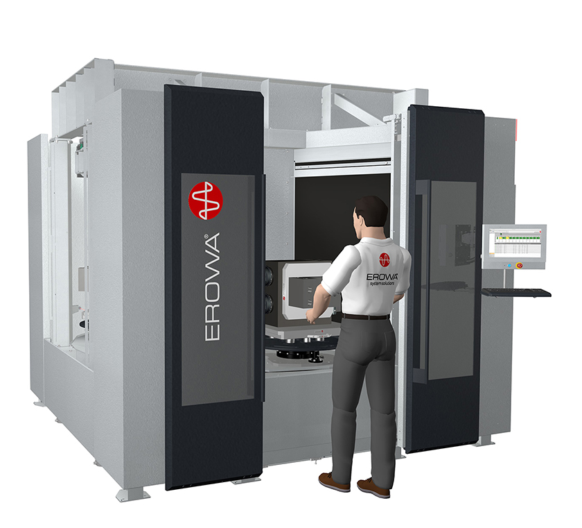>> Pour Erowa, la préparation et la production automatisée sont indissociables pour atteindre un haut niveau de productivité et une ergonomie adaptée à la manutention de charges importantes (800 kg)