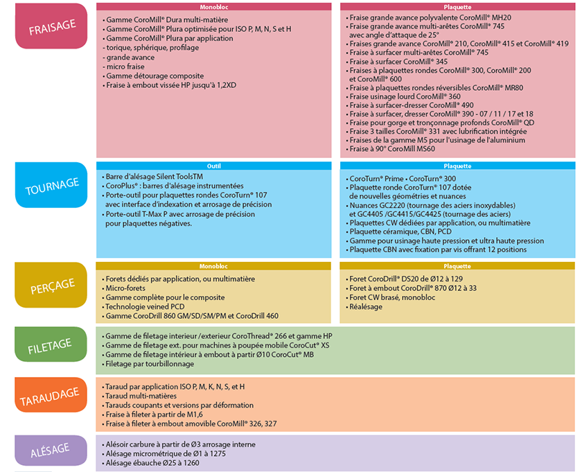 Sandvik Coromant est à la pointe en termes de fabrication d’outils, de solutions d’usinage et de savoir. Supports de formation, investissements importants en R&D et forts partenariats avec les clients assurent le développement de technologies d’usinage permettant de modifier, façonner et stimuler l’avenir de l’industrie manufacturière. Sandvik Coromant possède plus de 1700 brevets dans le monde entier, emploie plus de 7700 personnes et est présent dans 150 pays.