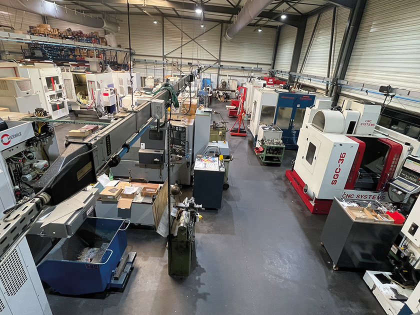 Pour ce faire, la douzaine de techniciens travaillent sur sept tours (allant de 2 à 7 axes) et six centres d’usinage 3 et 4 axes, auxquels s’ajoutent deux centres 5 axes Hermle entièrement automatisés et dotés d’un robot de 24 palettes.