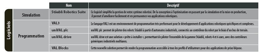 Stäubli Robotics est un acteur mondial majeur du secteur de la robotique qui fournit en permanence des solutions d’ingénierie aussi efficaces et fiables que nos services et notre assistance. Fournisseur de solutions complètes pour une production en réseau numérique, Stäubli offre une large gamme de robots 4 ou 6 axes, y compris des bras robotiques spécialement conçus pour les environnements sensibles, des robots mobiles autonomes, des systèmes de transport sans conducteur (AGV) et des cobots pour la collaboration homme-robot.