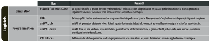 Stäubli Robotics est un acteur mondial majeur du secteur de la robotique qui fournit en permanence des solutions d’ingénierie aussi efficaces et fiables que nos services et notre assistance. Fournisseur de solutions complètes pour une production en réseau numérique, Stäubli offre une large gamme de robots 4 ou 6 axes, y compris des bras robotiques spécialement conçus pour les environnements sensibles, des robots mobiles autonomes, des systèmes de transport sans conducteur (AGV) et des cobots pour la collaboration homme-robot.