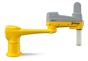 La dernière génération de robots Scara TS2 signe de nouveaux niveaux de performance. Entièrement redessinés, les robots 4 axes Stäubli offrent des temps de cycle plus courts et une répétabilité élevée. Ceux-ci se démarquent par une conception compacte et une structure fermée, avec des connexions facilement accessibles à l’avant du bras. L’absence de faisceaux externes, et donc de contours irréguliers, minimise la survenue de défaillances mécaniques ou d’émissions de particules et permet une utilisation en milieu difficile ou sensible. Le robot Scara TS2-100 dispose d’une charge maximale de 8,4 kg et d’un rayon d’action de 1 m, ce qui offre des possibilités inédites pour toutes les applications de palettisation.