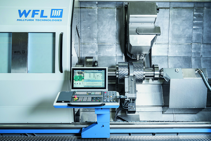 Le Millturn M80X, avec une longueur d’usinage de 4500 mm et un diamètre de tournage de 1000 mm, est équipé d’un dispositif de rectification et d’une barre d’alésage Silent ToolsTM afin d’amortir les vibrations. Les visiteurs ont pu constater les possibilités de la machine grâce à une démonstration en direct de l’usinage d’un arbre d’engrenage mesurant 800 mm de diamètre et 1 824 mm de long. Au cours de la démonstration, des dents d’engrenage seront produites à l’aide des cycles WFL FLANX. Sur le Millturn M50 / 3 000 mm, WFL a fait sur le salon une démonstration en direct de l’usinage d’un arbre de production pour le secteur de l’énergie, ainsi que de pales de turbine. La pièce de démonstration a un diamètre de 600 mm et une longueur de 2 355 mm.