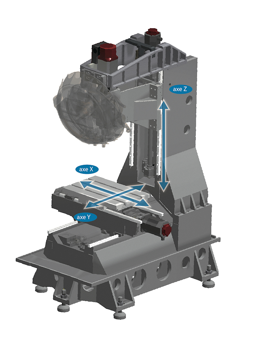 Développé en 2016, le VTX-7A est équipé d’une structure en col de cygne avec guidage à rouleaux HIWIN HB pour un poids total de 3150 kg, assurant plus de rigidité et de stabilité afin d’effectuer des accélérations de 1g. La machine est dotée, en standard, d’une broche à entraînement direct BBT30 de 12000 tr/mn. L’entraînement direct sur le moteur évite les transferts de chaleur, maintient une grande précision, notamment en taraudage, réduit les vibrations et nécessite moins de maintenance.