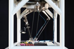 Dans la gamme des robots Delta, on trouve le nouveau DR-3iB/8L. Avec une charge utile de 8 kg et un diamètre de travail de 1 600 mm, il est livré en blanc en standard afin de répondre notamment aux exigences des industriels de l’agroalimentaire. Avec sa charge utile élevée, il peut être utilisé pour manipuler des produits emballés tels que des canettes.