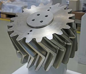 >> Ce pignon droit en 16MnCr5, doté d’une denture à chevrons (Ø450 mm), a été fraisé en 18 heures et 45 minutes sur une Röders RXU 1001 DSH (Photo : Klaus Vollrath)